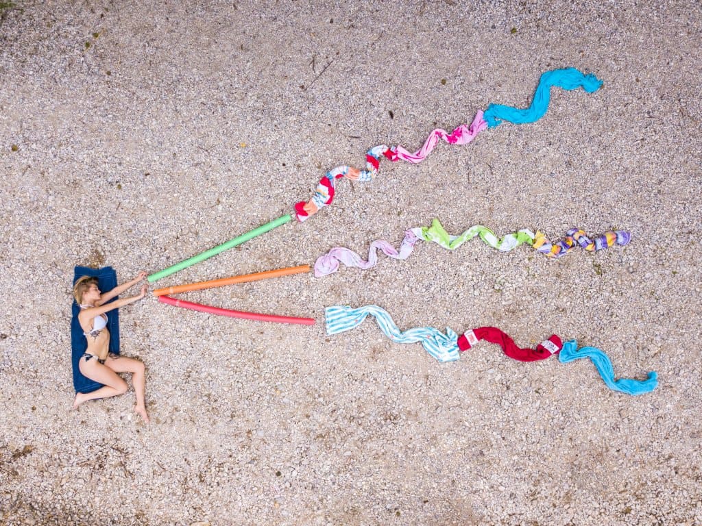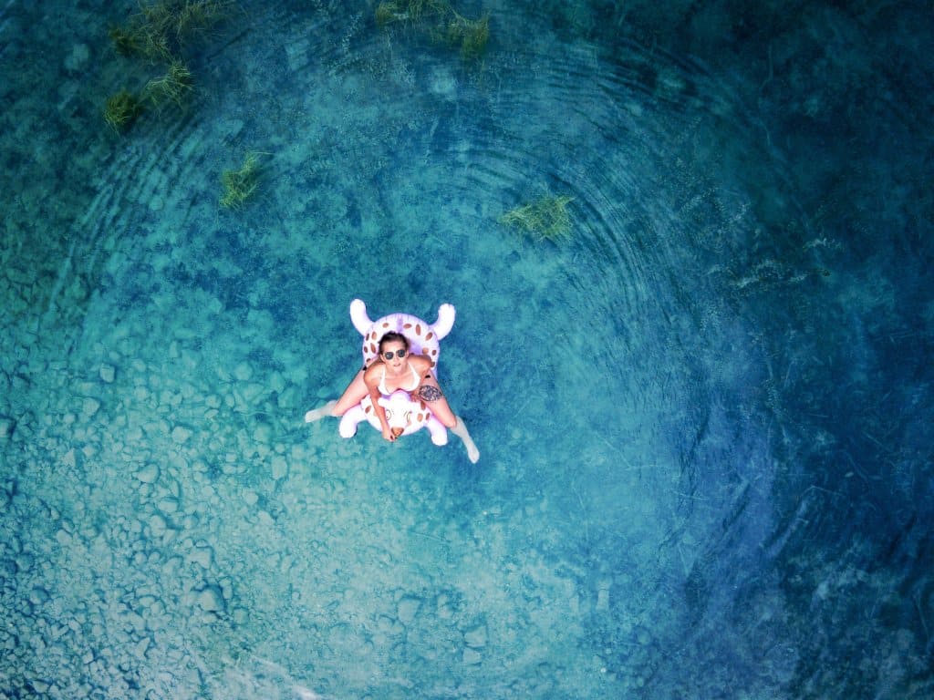 Поистине, замечательный вид получается при съёмке себя или других на фоне моря, реки, озера или бассейна. Чтобы не потеряться на водной глади, следует взять яркий реквизит. Это может быть купальная шапочка, надувные игрушки и резиновые круги. А если правильно их расположить, то вы будете отлично смотреться в кадре.