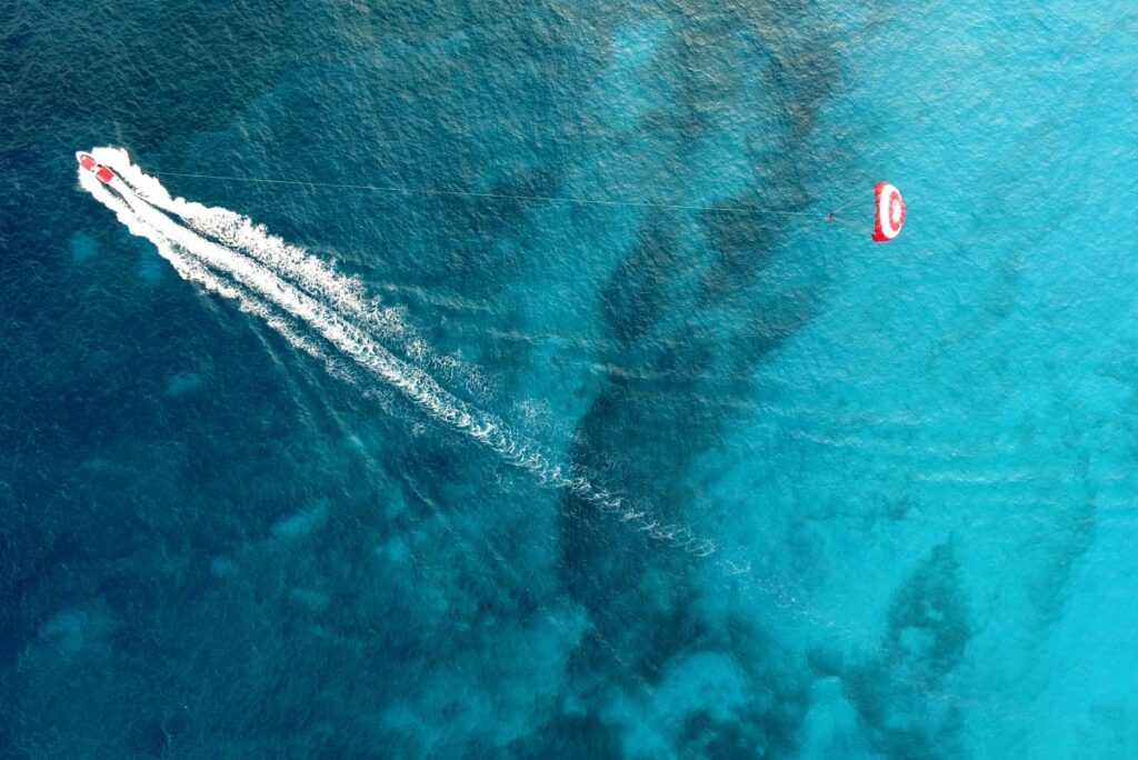 Если у вас есть беспилотный летательный аппарат, то вы сможете снять красочные цвета парашюта и запечатлеть темное море.