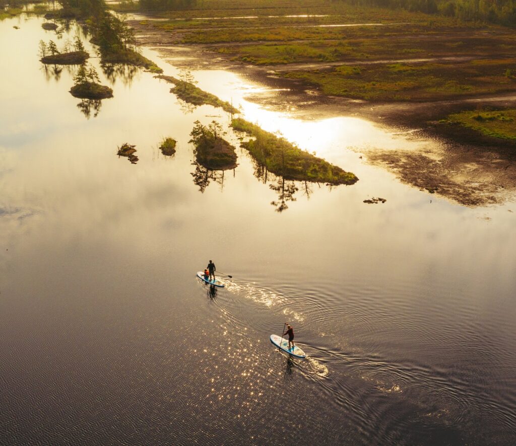 Если вы научитесь работать с отражением на водной глади, то сможете получить интересную композицию. Если делать кадры каяков или каное на воде, то можно увидеть интересные узоры волн позади лодок. Дрон должен находиться высоко над водой, чтобы получилось сделать акцент на отражении. Чтобы научиться делать действительно потрясающие снимки, нужно много практиковаться. Чем больше практика, тем лучше будет результат.