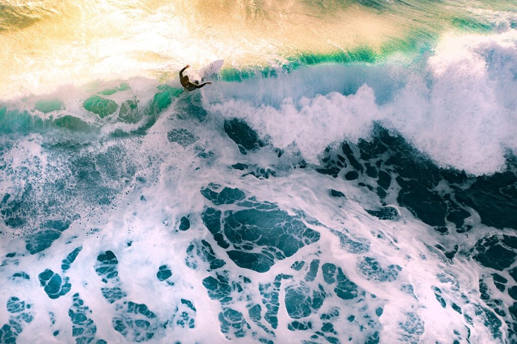 Красиво наблюдать, как серферы покоряют высоченные волны. Для покорения волн определенно нужна ловкость, сила и выносливость. За серферами можно бесконечно смотреть. Кадры с беспилотника выйдут действительно невероятные.