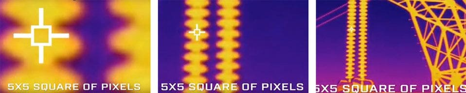 Дейв Ли из FLIR говорит о том, что MFOV представляет собой не 1 пиксель. Это комплекс из 5 * 5 пикселей. Для получения точного измерения объект должен попасть в пределы этого пятна или немного выйти из него.