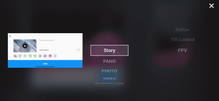 2. Режим Story. Приложение DJI Mimo на смартфоне позволит создавать уникальные видеоролики. В этом же приложении их можно мгновенно отредактировать и поделиться с друзьями.
