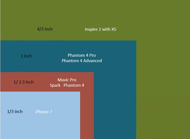 Если вы разбираетесь в съёмке, то наверняка знаете, что качество кадра напрямую зависит от матрицы камеры. Это правило применимо и для камер дронов. 1-дюймовая матрица — это новый «золотой стандарт», применяемый как на продвинутых потребительских беспилотниках, таких как Mavic 2 Pro , так и на квадрокоптерах для профессиональных фотографов, таких как Phantom 4 Pro V2.0. Наиболее серьёзные образцы подвесным камер, например Zenmuce X5 для Inspire 2, имеют матрицу CMOS размером 4/3 дюйма.
