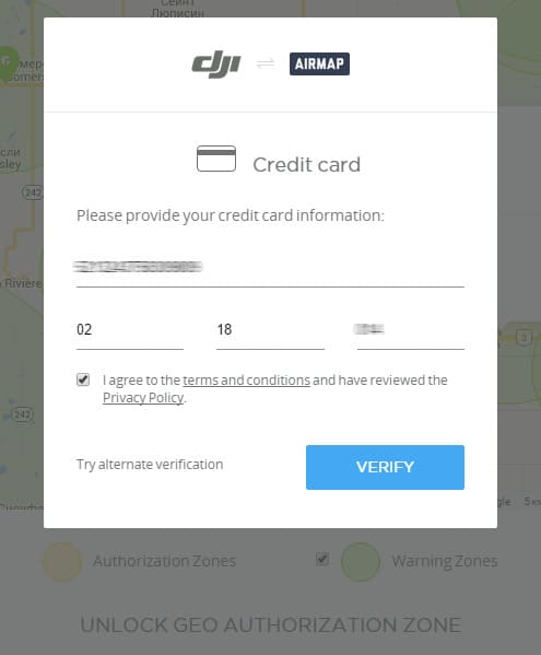 Почему я об этом рассказываю? Уже достаточно давно была анонсирована система, разработка которой осуществлялась совместно с Airmap. Эта система обеспечивает тем, кто имеет право на полет в таких местностях (либо очень хочет получить его) возможность временной отмены No Fly Zone. Требуется лишь предоставить сведения о себе, для чего производится проверка банковской карты или номера телефона. Ранее в России потребности в этом не возникало, так как здесь система еще не функционирует.