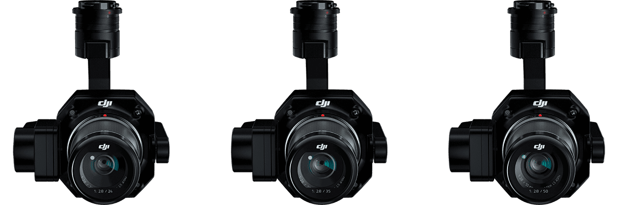 - DJI DL 24 мм F2.8 LS ASPH (с колпачком и балансировочным кольцом/фильтром), поле зрения 84°; DJI DL 35 мм F2.8 LS ASPH (с колпачком и балансировочным кольцом/фильтром, поле зрения 63,5°; DJI DL 50 мм F2.8 LS ASPH (с колпачком и балансировочным кольцом/фильтром), поле зрения 46,8°