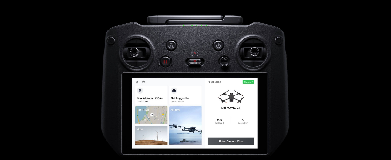 Портативный пульт дистанционного управления DJI RC Pro Enterprise [8] с экраном высокой яркости 1000 нит для четкой видимости под прямыми солнечными лучами, встроенный микрофон для четкой связи и 1,5-часовая быстрая зарядка мощностью 65 Вт.