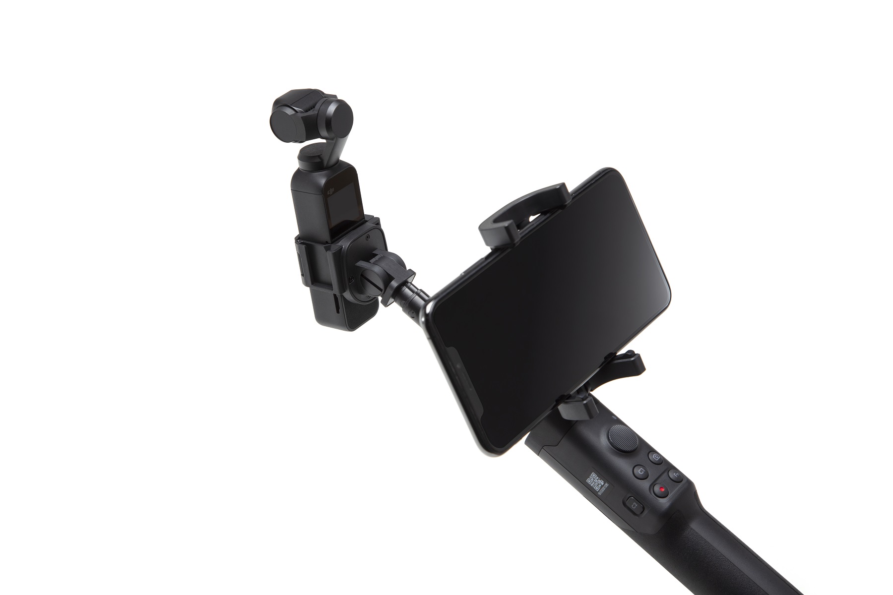 Выдвижной монопод Osmo Extension Rod может достигать максимальной длины 500 мм. Это вам возможность производить съемку под разными углами. У вас будет возможность закрепить смартфон к держателю и использовать беспроводной модуль для Osmo Pocket или соединетльные кабеля.
